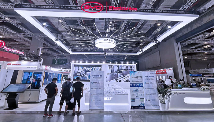 項目名稱:2023上海國際自動化機器人展 舉辦地點:上海國家會展中心 合作企業:比亞迪 面積:180㎡ 特裝展臺設計